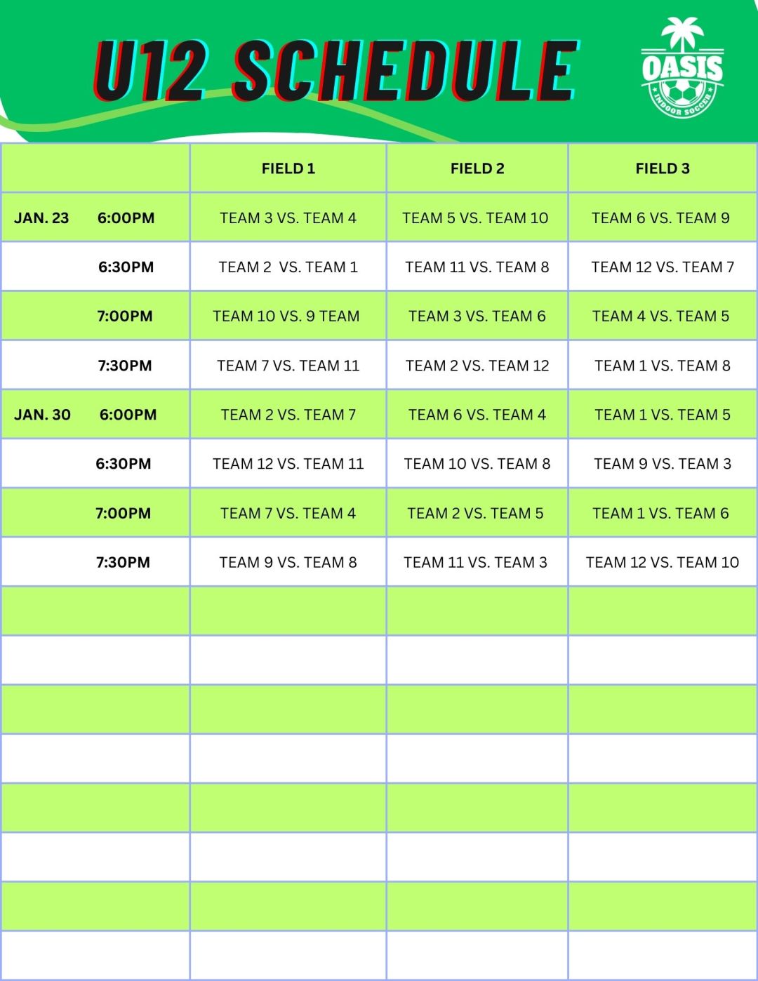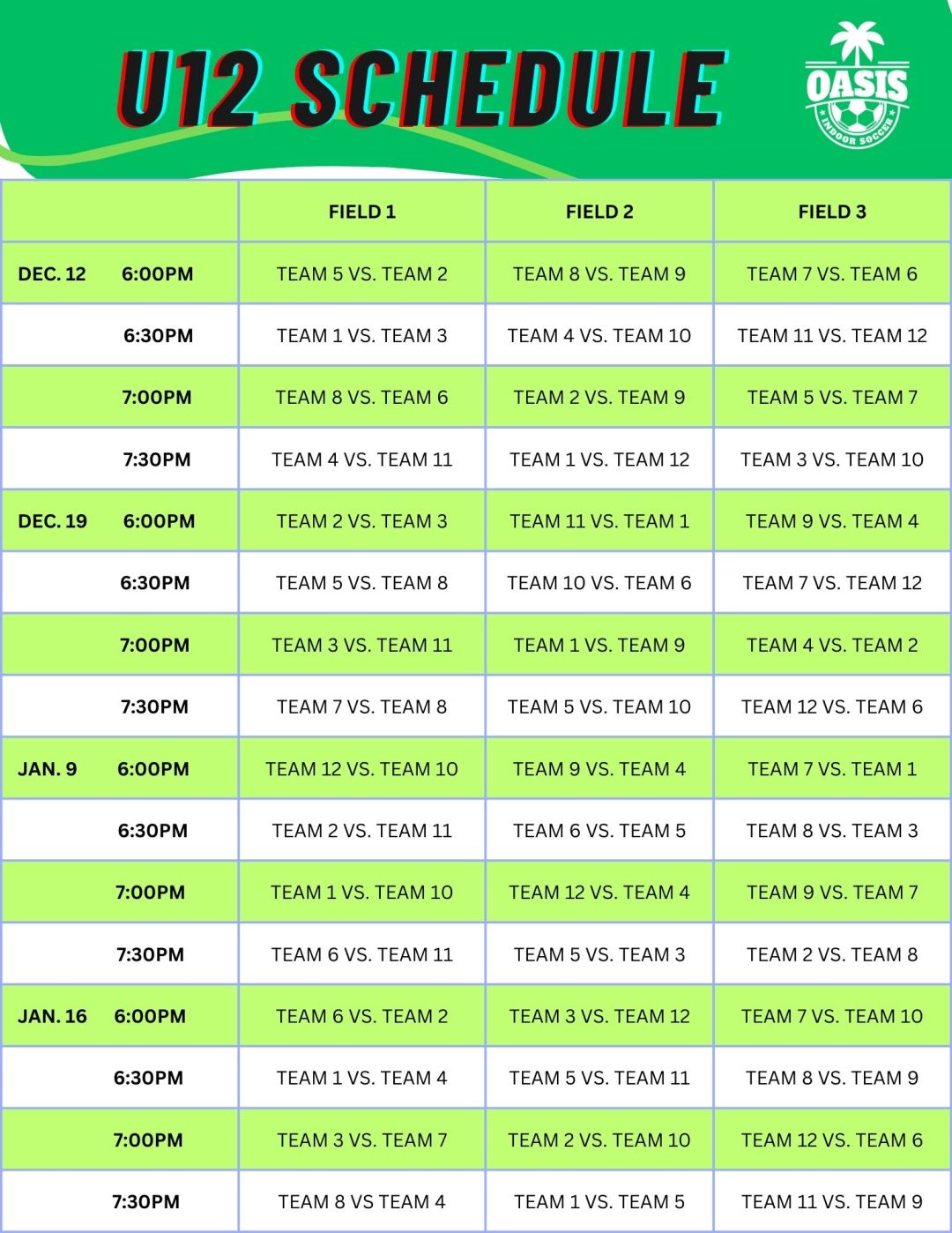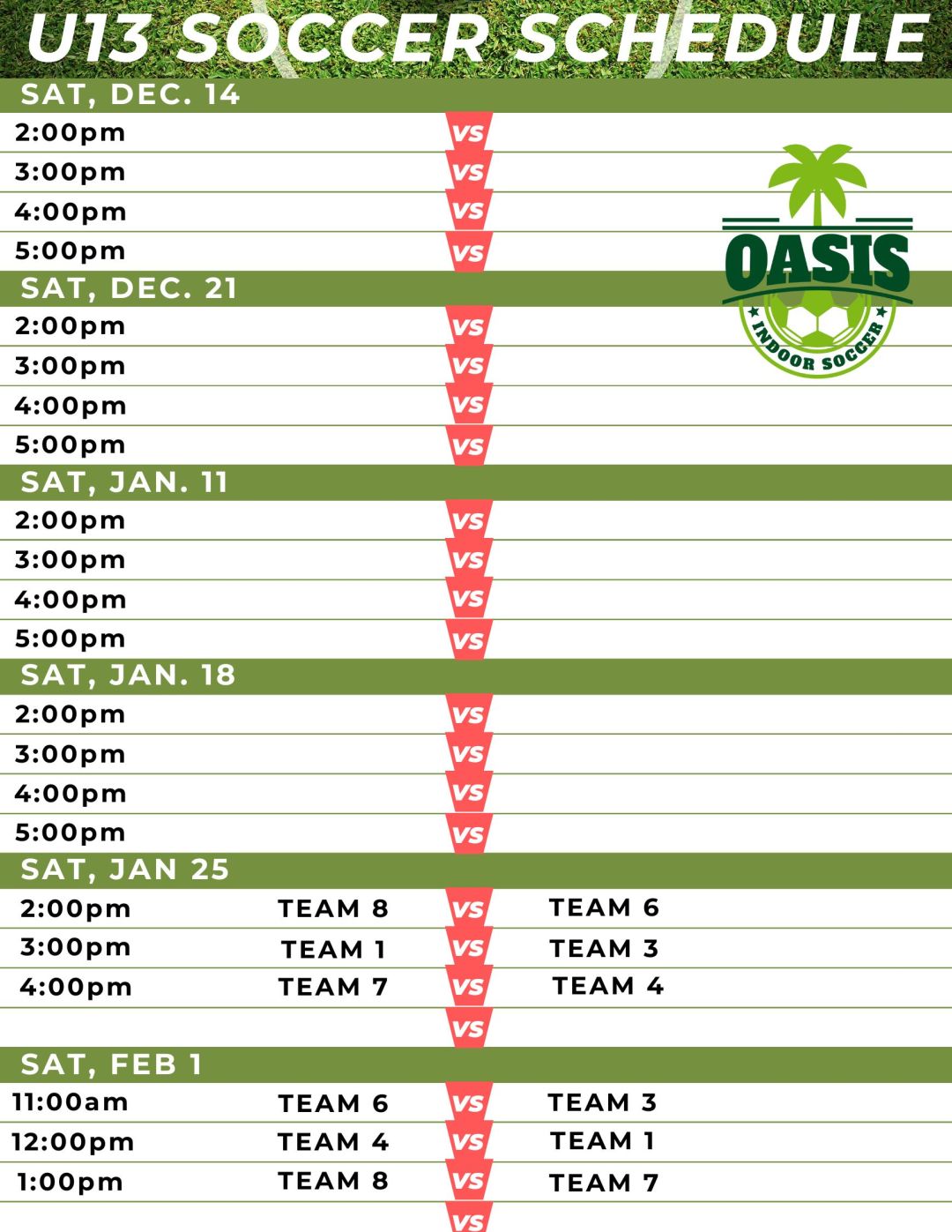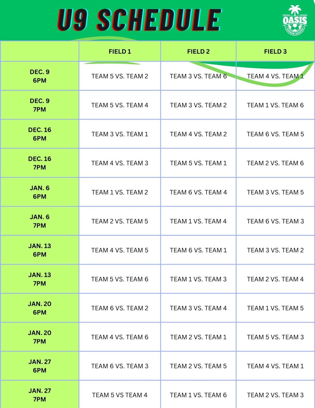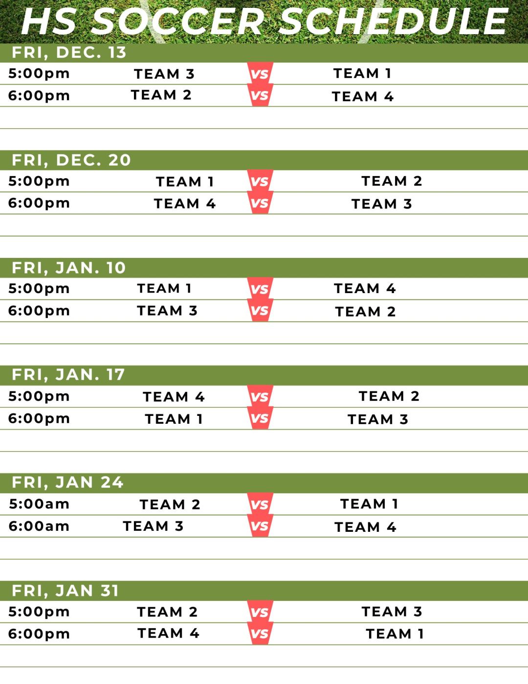 DATES: 8 week season. 6 weeks of games. We will not have games Dec. 23rd – Jan5th.
